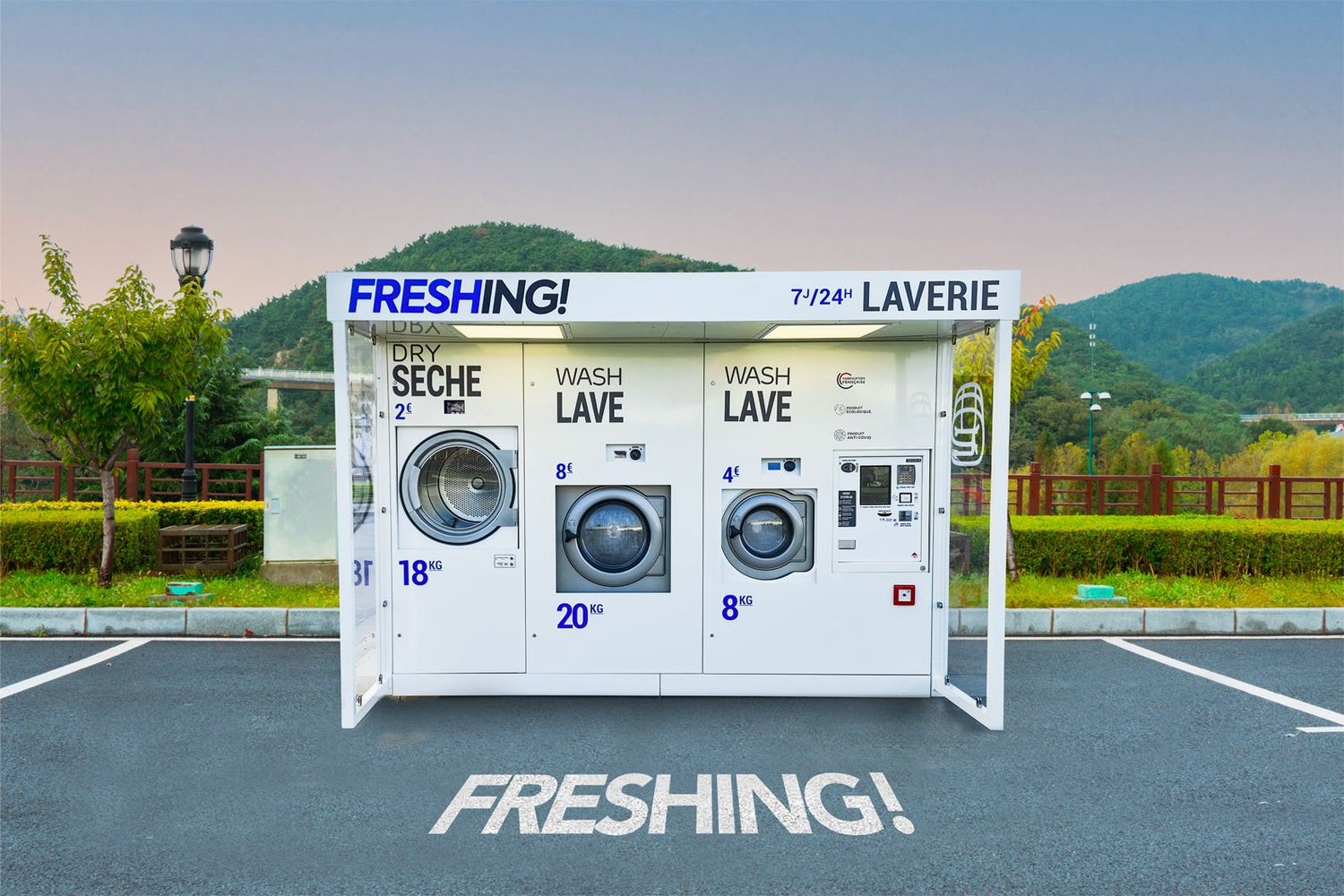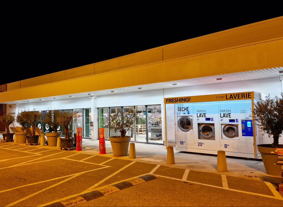 Découvrez nos kiosques laverie automatisés de dernière génération, ouverts 24 heures sur 24, 365 jours par an.